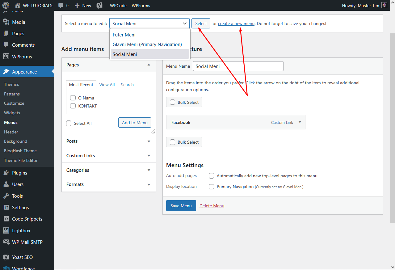 Pravljenje Menija i dodavanje stranice,posta ili nekog linka: