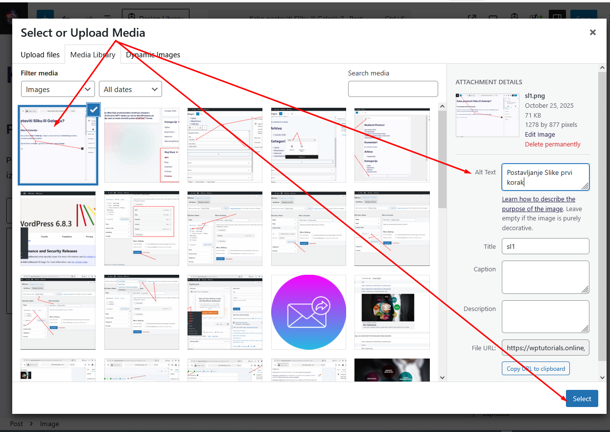 Bilo koju opciju da izabereš jako je bitno upisati ALT Tekst (Opis Slike i teksta koji slika predstavlja).